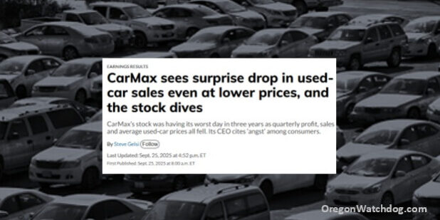 Last month it was reported that national car dealership chain, CarMAx, has experienced plummeting used car sales. Those car sales fell even with steep discounts being offered.